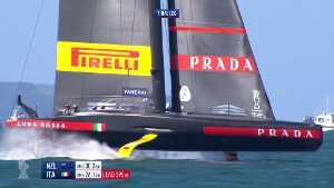 3 a 3. Ancora una giornata in parità nella sfida di Coppa America tra lo sfidante Luna Rossa Prada Pirelli Team e il difensore Emirates Team New Zealand. Il Team italiano si aggiudica la prima delle due regate in programma, Emirates Team New Zealand la seconda. Il servizio è di Enzo Cappucci
