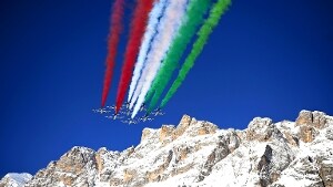 Il primo sorvolo del 2021 con la bandiera italiana più lunga del mondo sulle piste