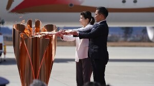 Delegazione giapponese assente per la pandemia, a ricevere il fuoco di Olimpia è stata la ex campionessa di nuoto Naoko Imoto che vive e lavora in Grecia